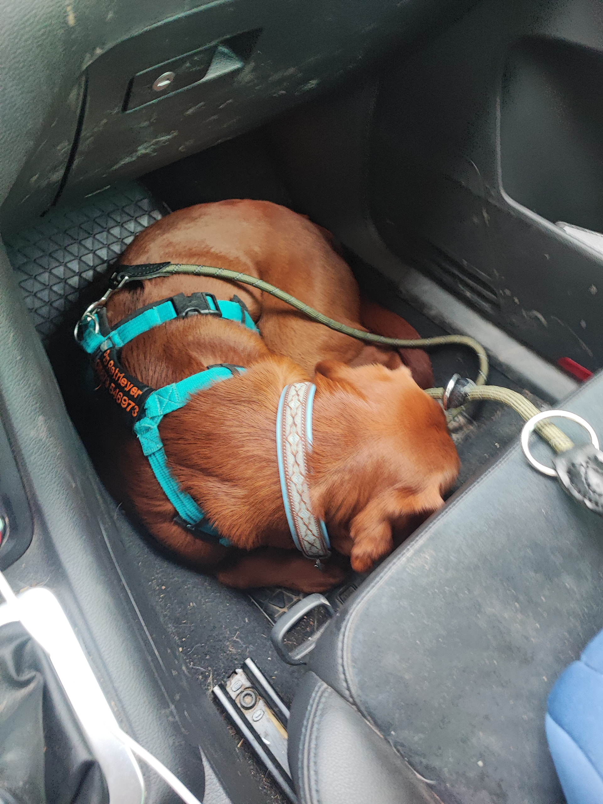 Autofahren: er ist ein sehr ruhiger Mitfahrer, legt sich ab und schläft.