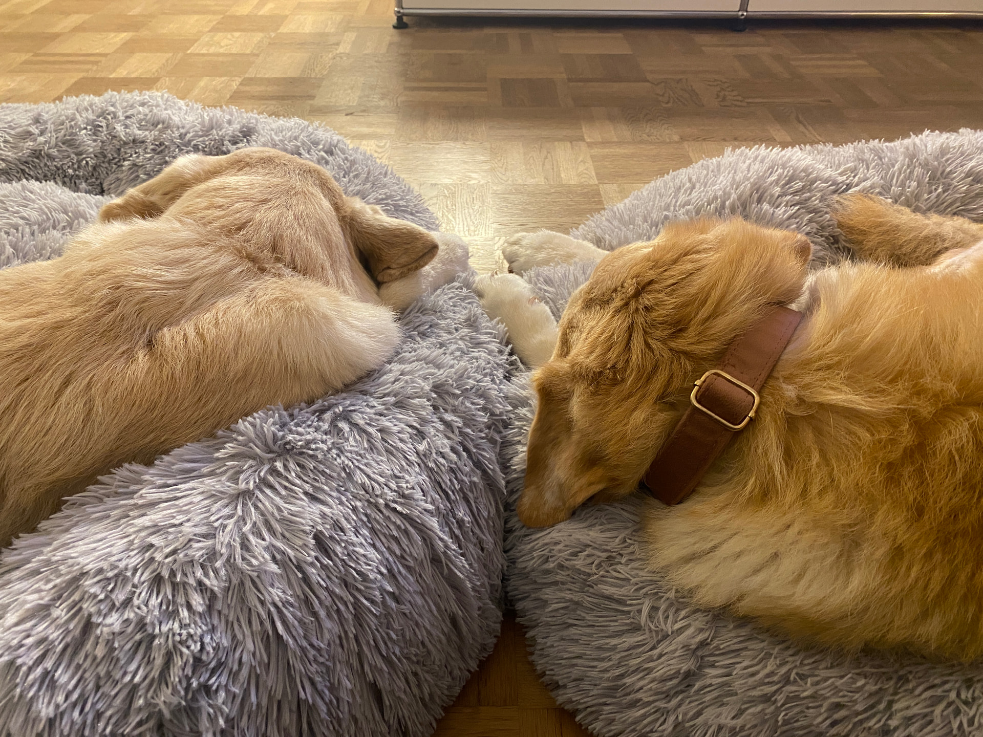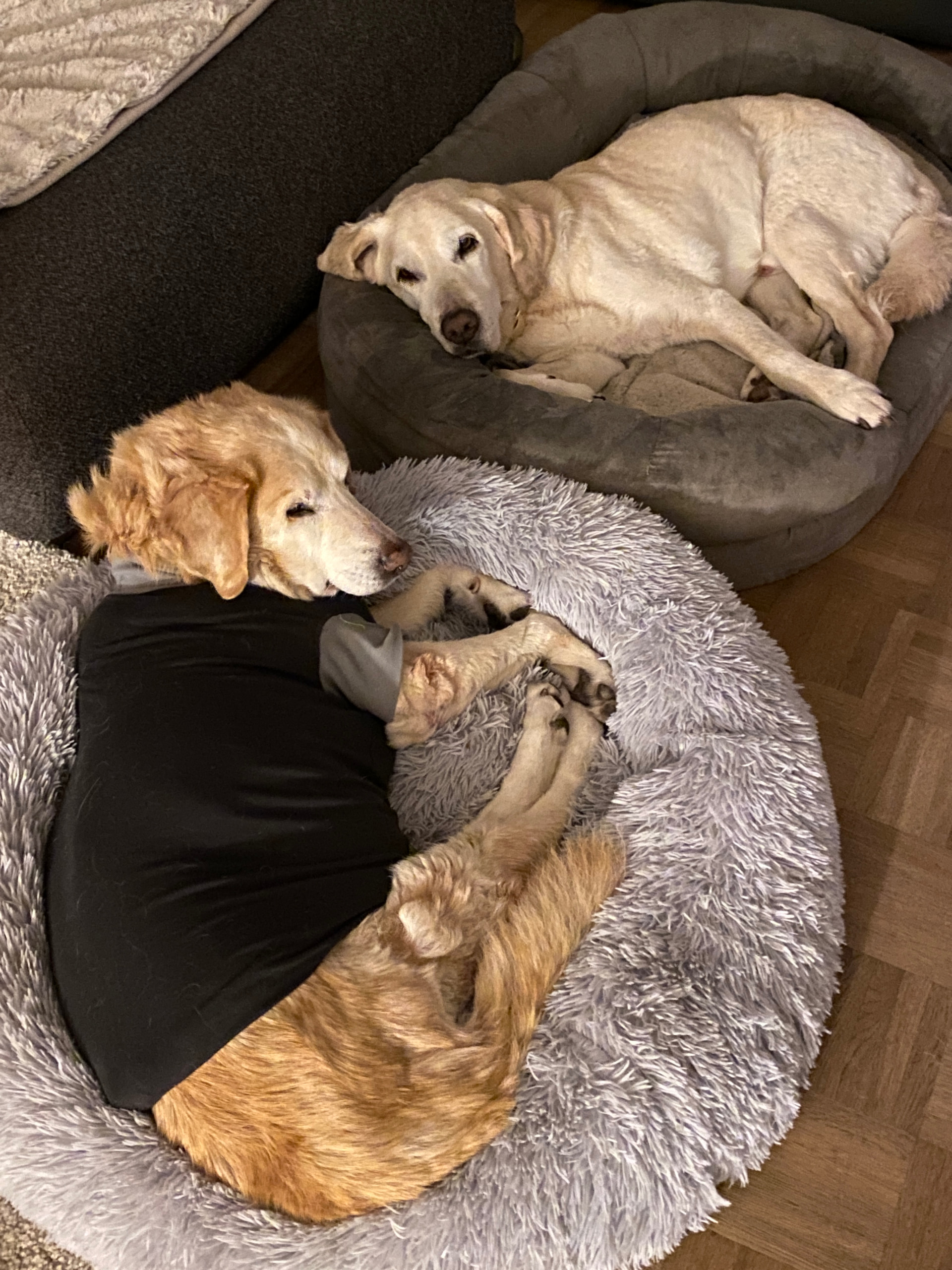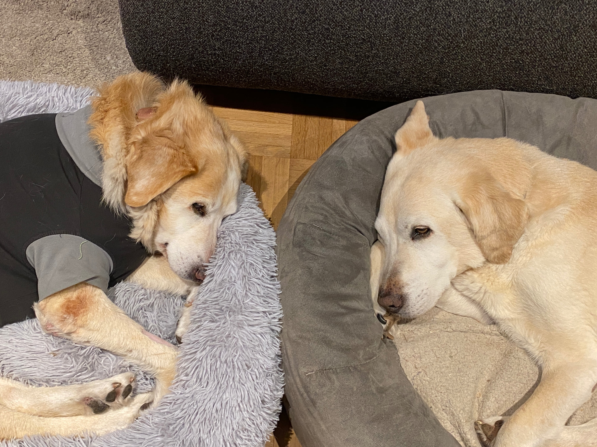 In den vergangenen 9 Monaten sind Emma und unser 15,5 jähriger Rüde immer näher zueinander gerückt. Die beiden gehen gemeinsam ihre Gassi-Runden miteinander, teilen das Bedürfnis nach Ruhe und Wärme - und sie teilen auch das Bedürfnis nach gegenseitiger Nähe mehr und mehr.