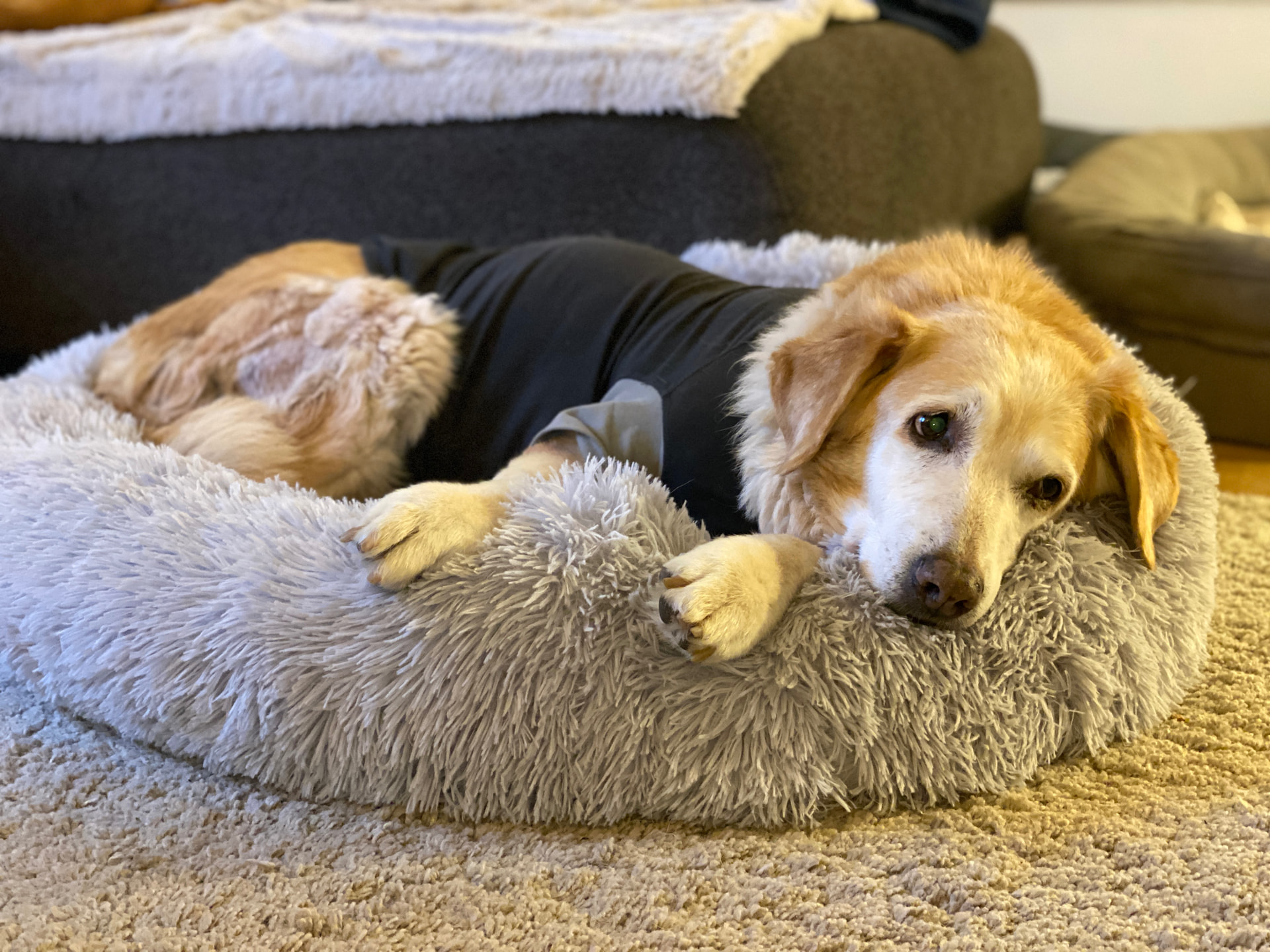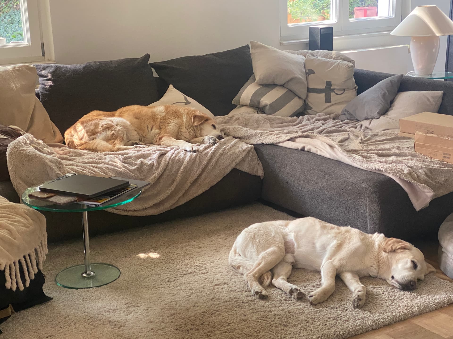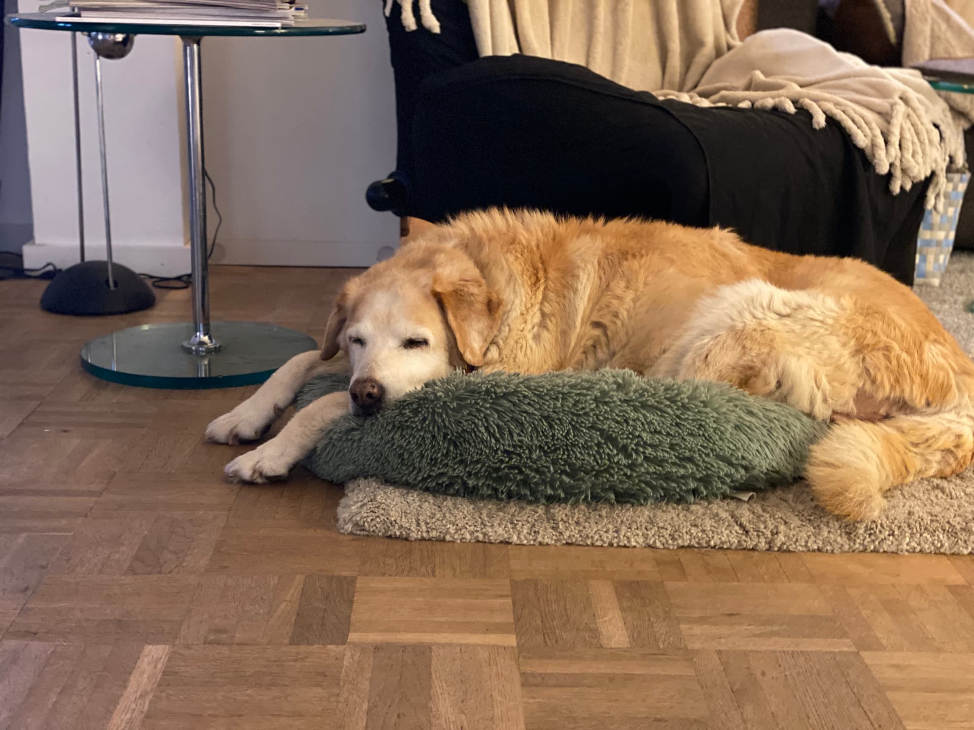 Seit März hatte Emma ihren bevorzugten Schlafplatz immer auf dem Teppich und verweigerte sämtliche Körbchen und Kudden. Manchmal machte sie es sich auf dem Sofa gemütlich, aber meistens war ihr der Teppich lieber.