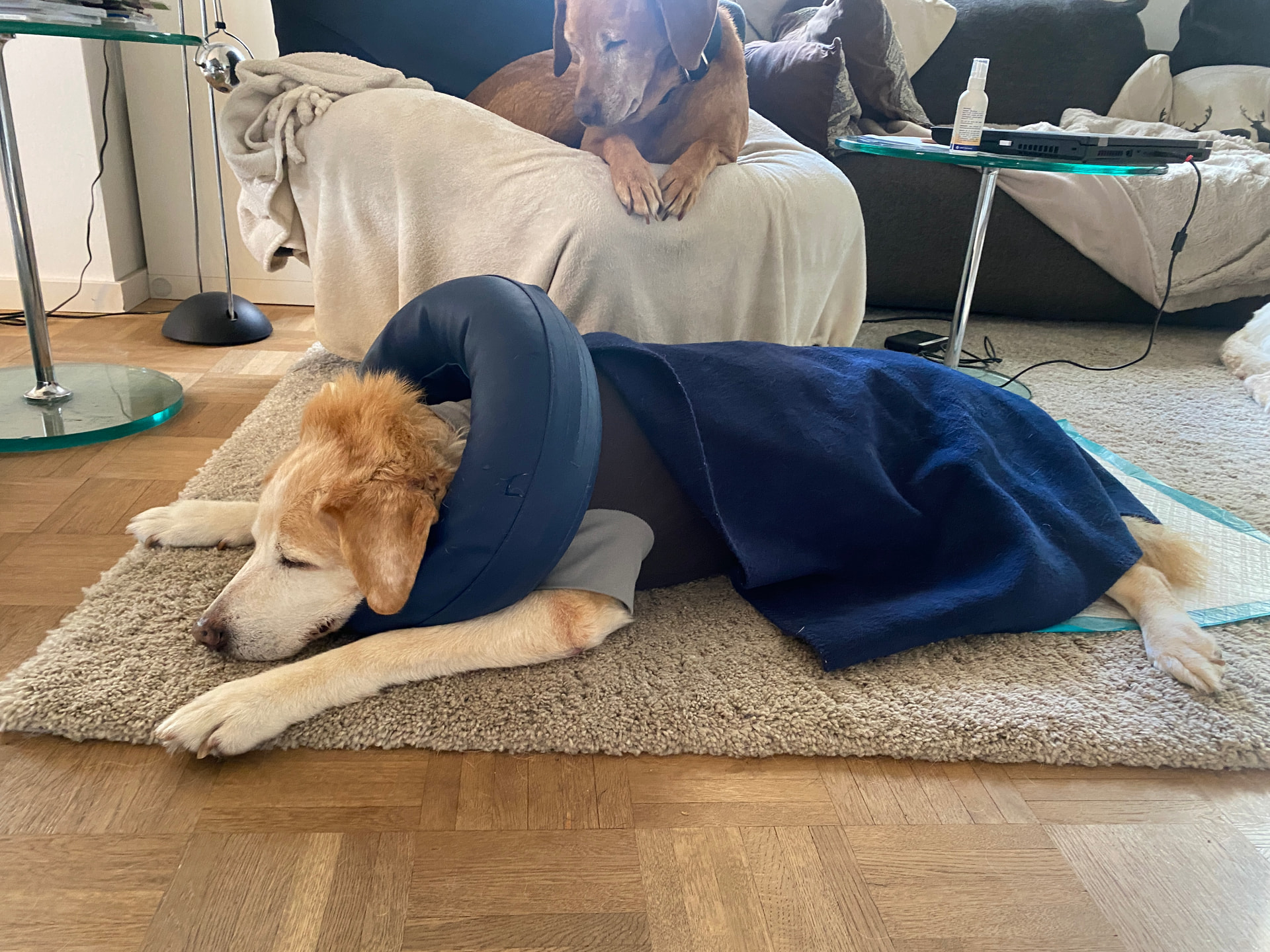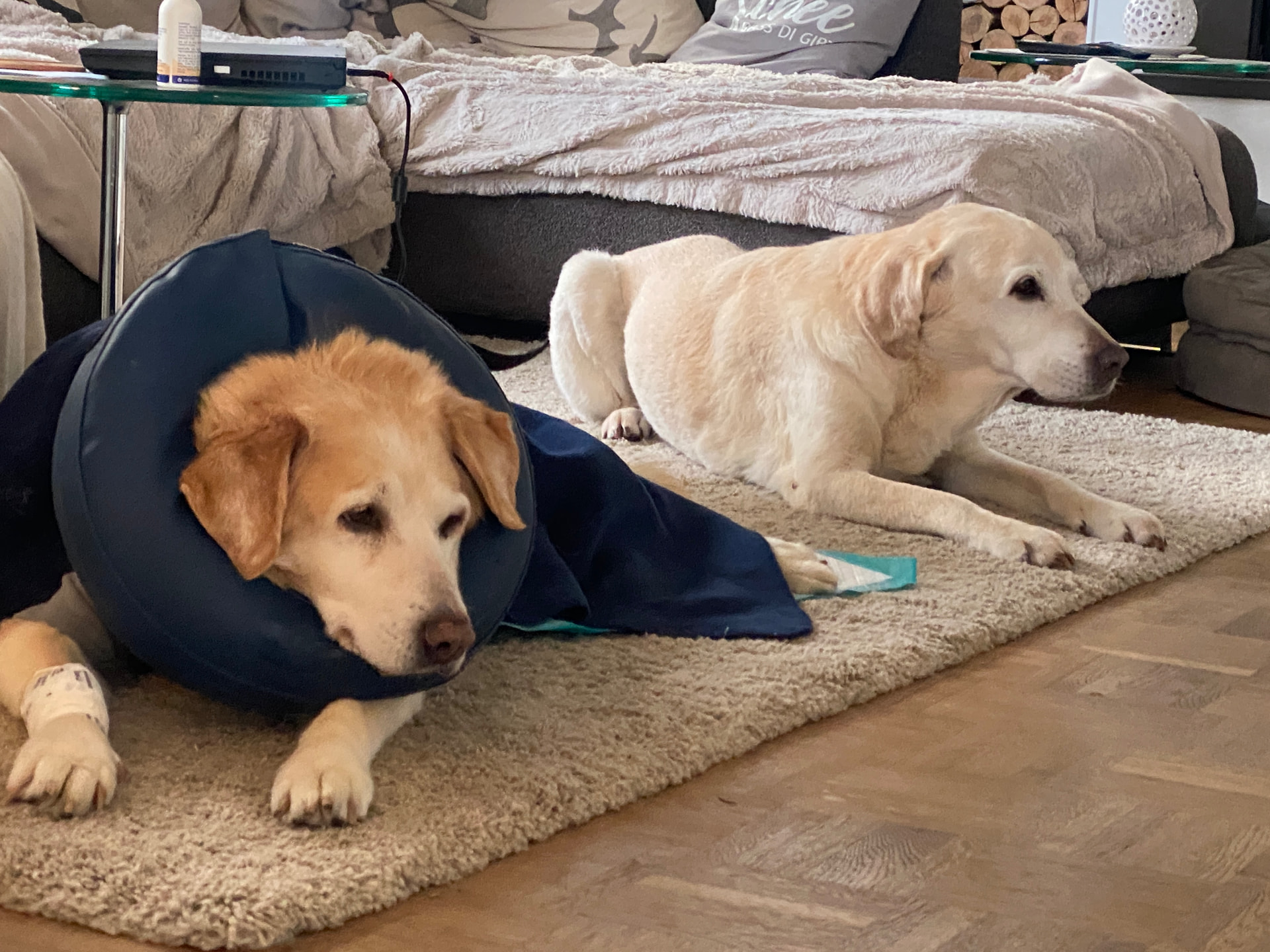 Die Narkose war tätsächlich nicht ganz ohne Komplikationen, aber dank der erfahrenen und umsichtigen Tierärzte blieb Emma stabil und nach 2,5 h kam der erlösende Anruf, dass Emma abholt werden kann.