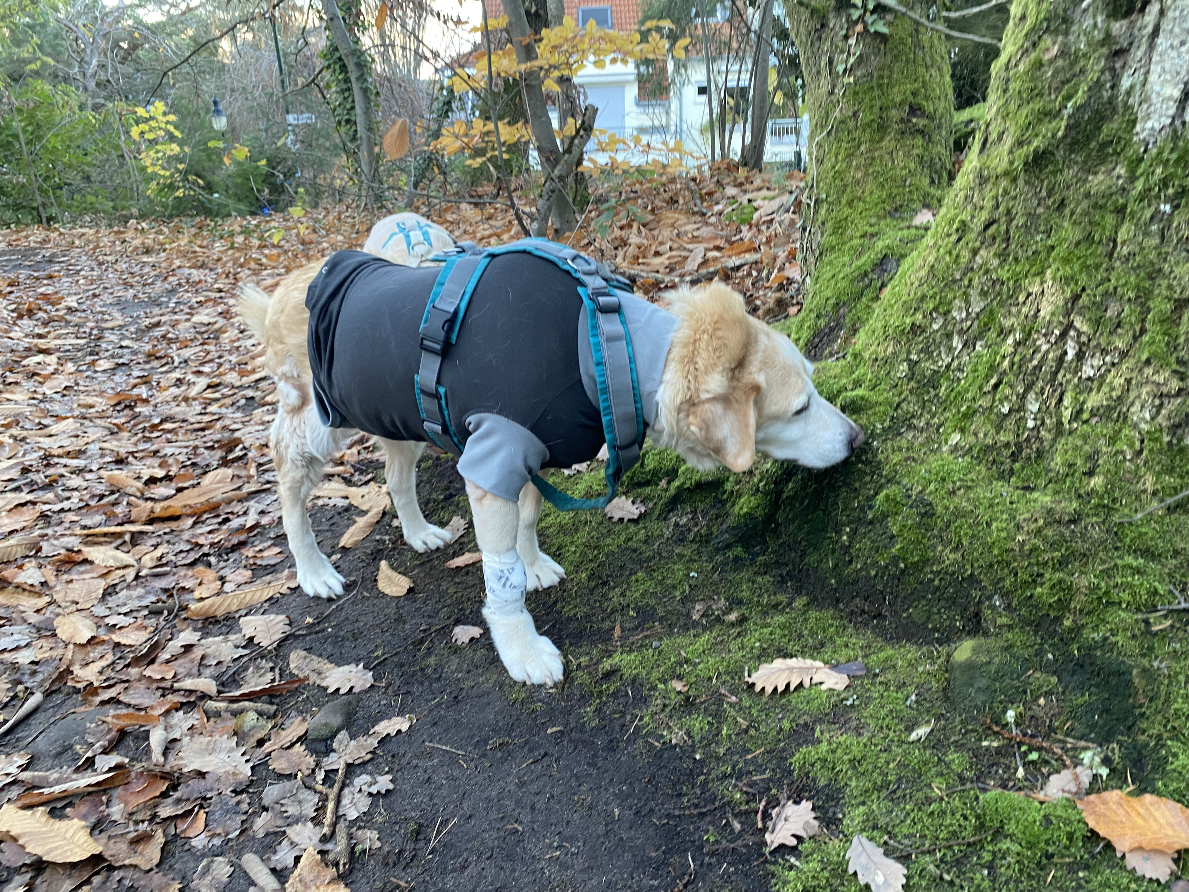Unsere kleinen Gassi-Runden haben wir nochmal etwas angepasst - aber die tägliche Runde ist Emma sehr, sehr wichtig und sie möchte unbedingt dabei sein.