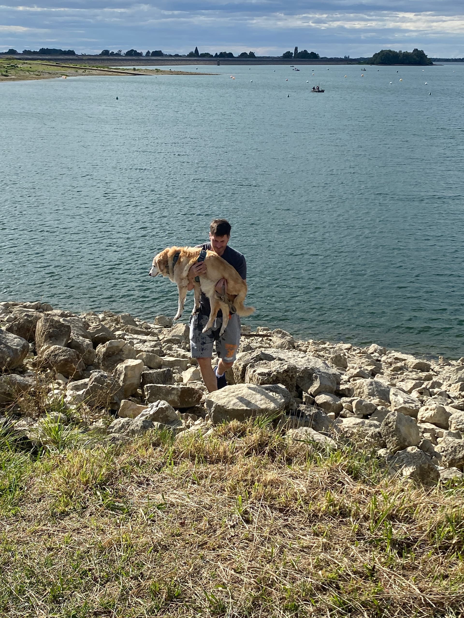 hier wollte Emma ins Wasser und ist zielstrebig über die Steine geklettert… hoch war es dann nicht mehr so einfach und die Kraft verliess Emma ein wenig. Da musste der Pflegepapa dann helfen…