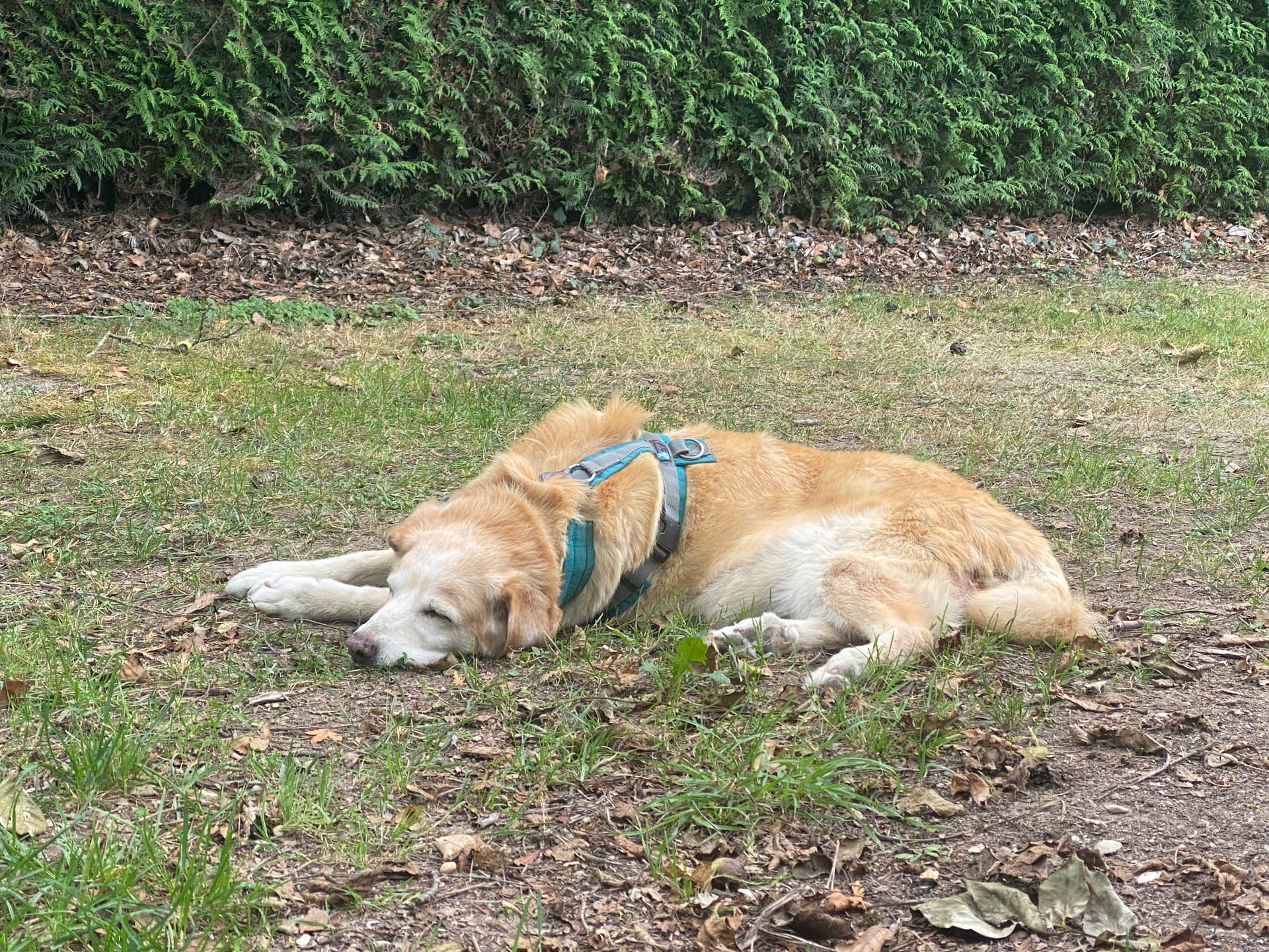 Ihre angeschlagene Lunge scheint bei diesen Temperaturen ihr deutlich weniger Probleme zu machen. Unsere kleinen Seniorenrunden sind Emma sehr, sehr wichtig und sie fordert diese regelrecht ein.