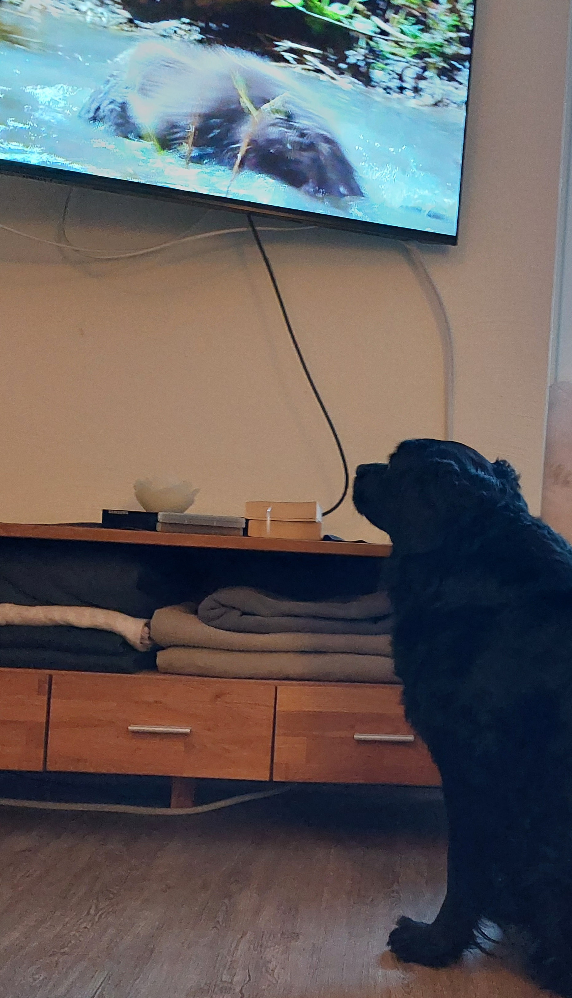 Beim Bügeln habe ich heute eine Tier Sendung geschaut und Fay war ganz interessiert😍