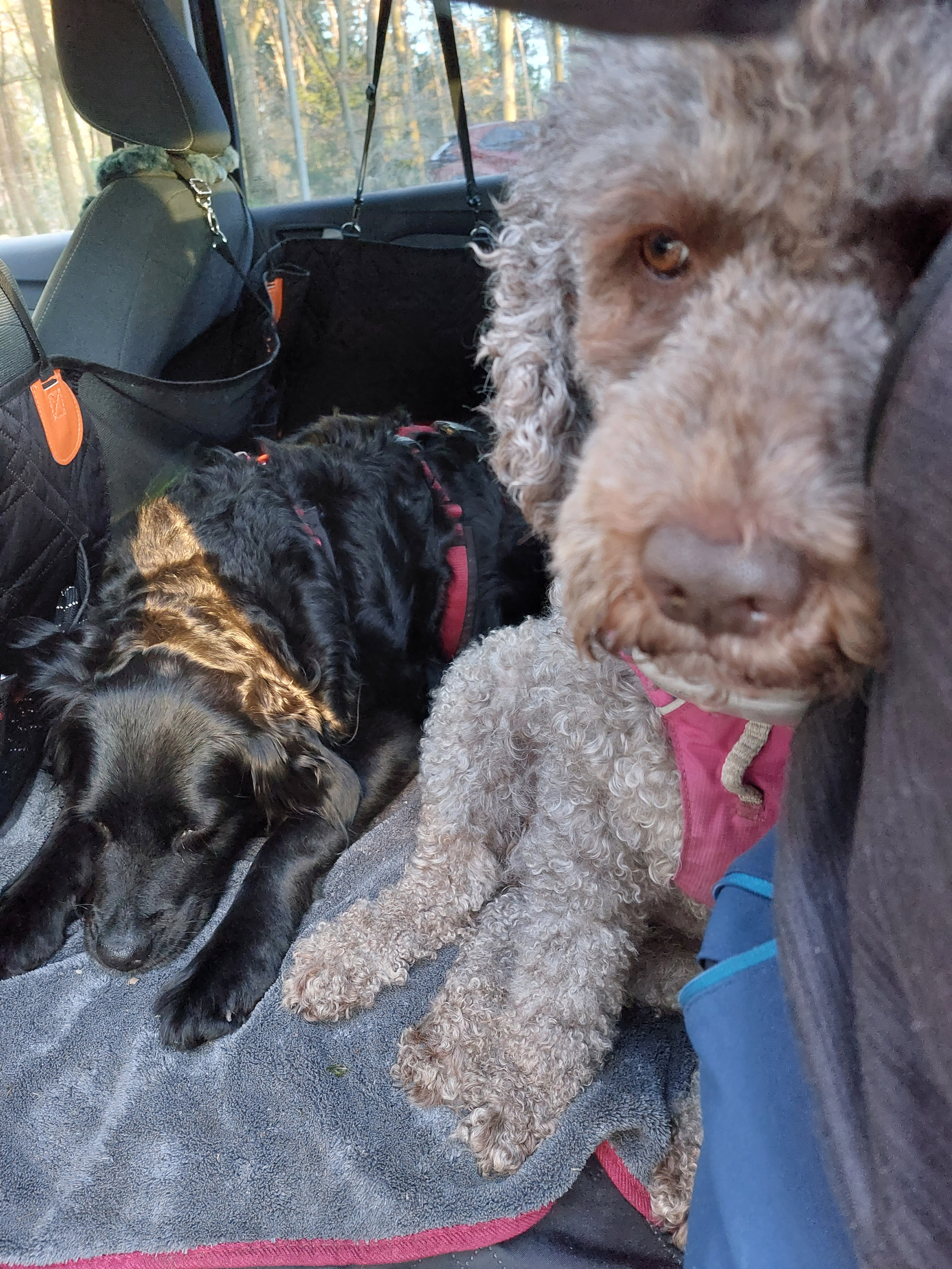 Gemütlich und kuschelig liebt sie natürlich auch und gibt auch mal zu verstehen das sie wieder zurück ins warme Auto möchte.![]()