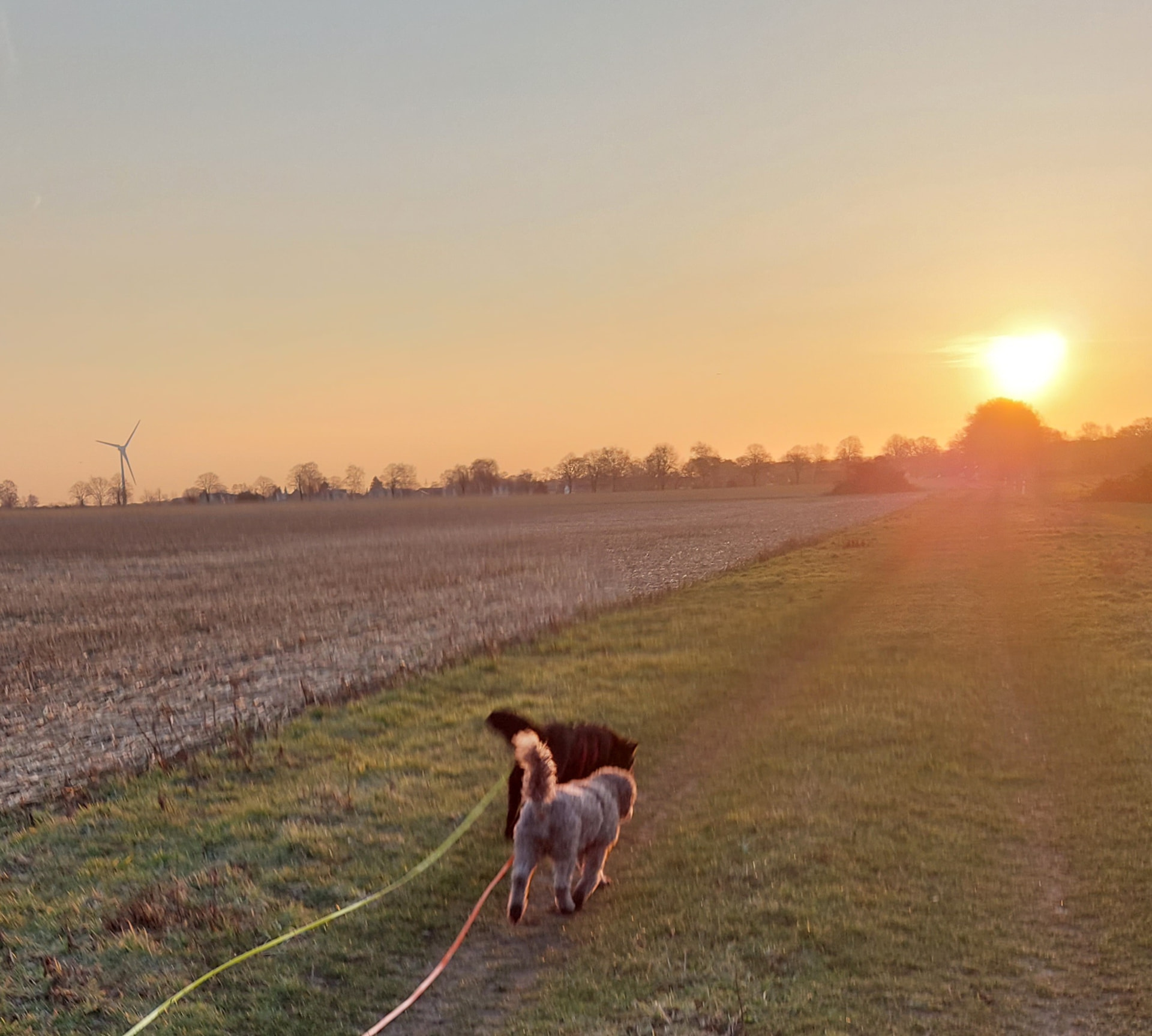 Dann der super Gau, aus einem Gestrüpp kam ein unangeleinter mittelgroßer Terrier🐕, kein Mensch weit und breit. Alle drei waren etwas verdutzt, aber, Fay ganz cool einmal gebellt, kurz geschaut und entspannt ging es unseren Weg weiter🤩