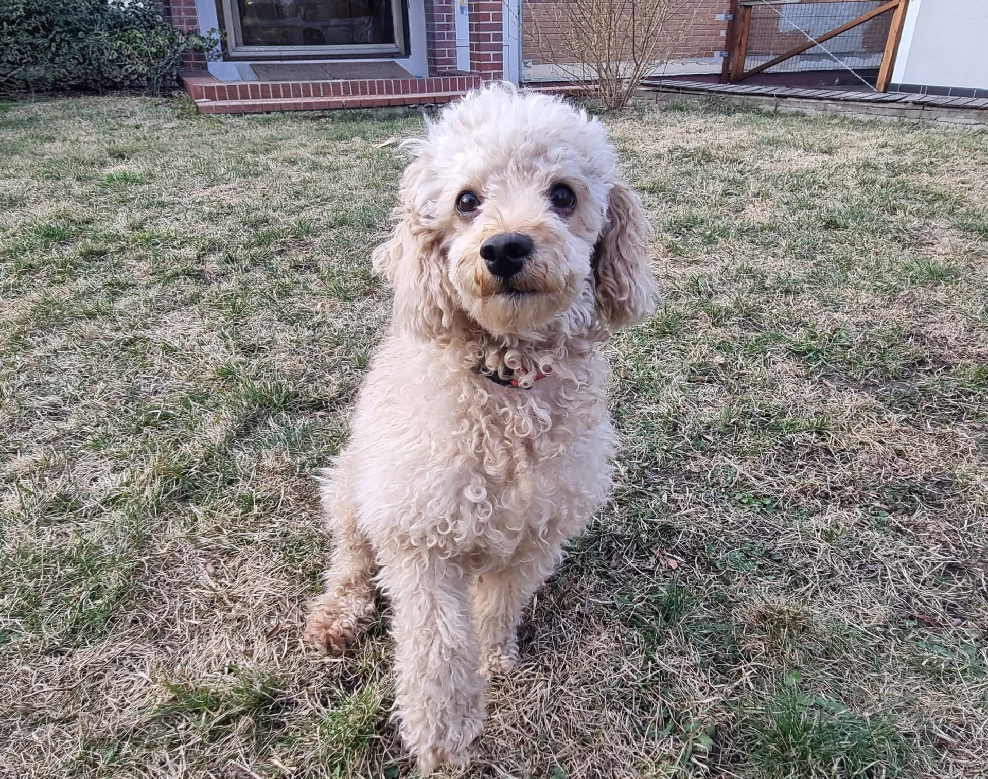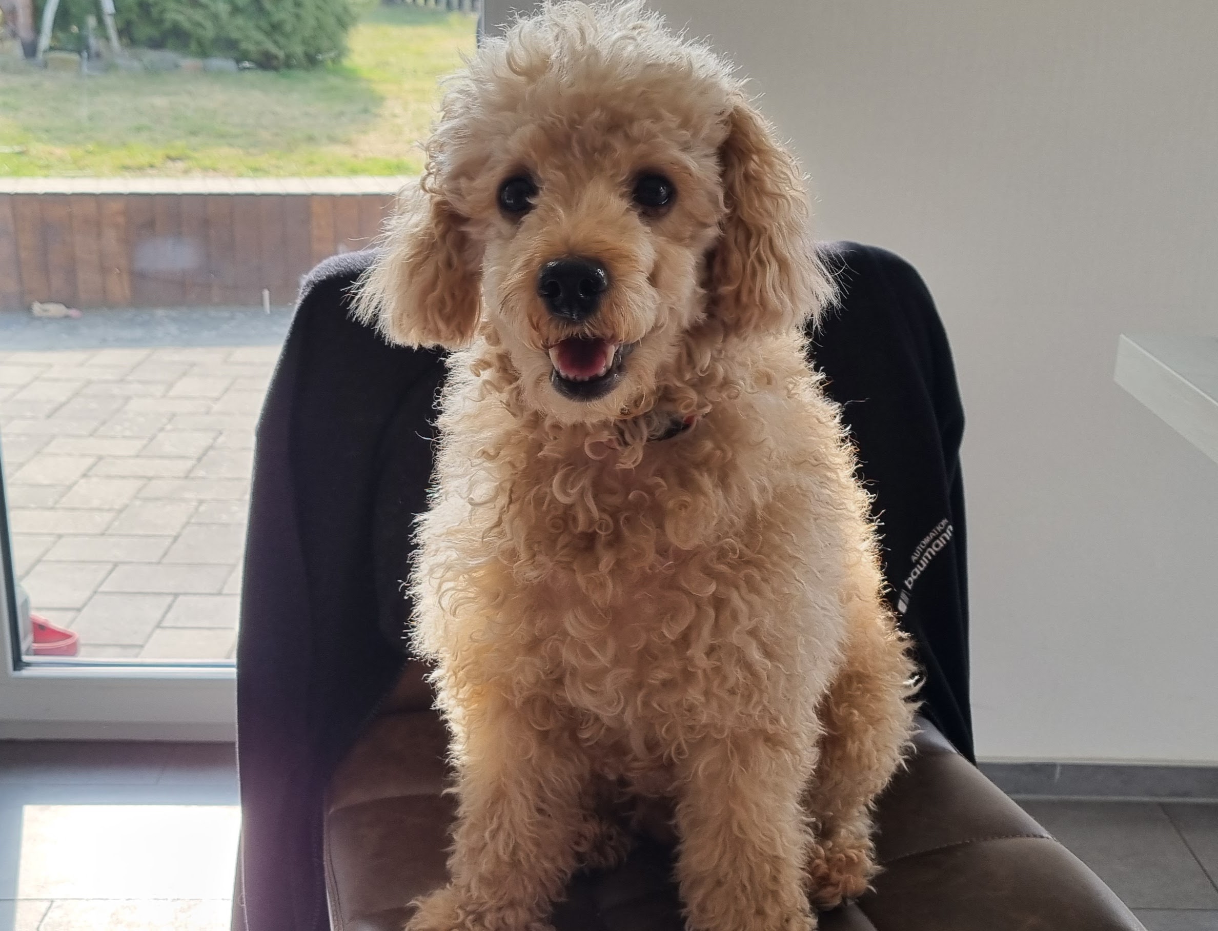 Pudeltypisch frisst Fienchen nicht alles, da darf es schon die Bio – Rind – Baby – Nahrung oder ein Stückchen Käse sein. Auch hier tasten wir uns langsam heran, um zu schauen wofür sie sich begeistern kann.