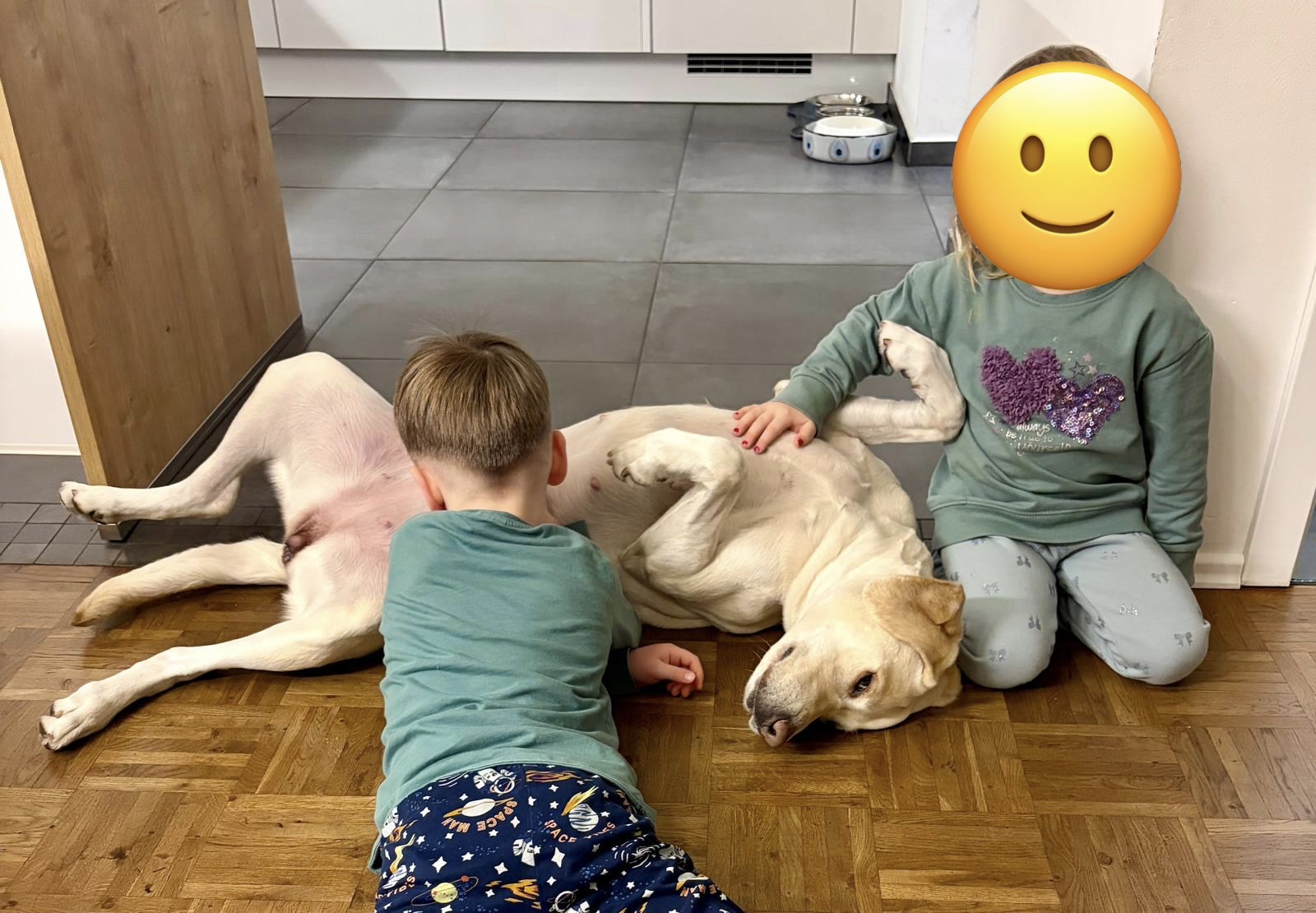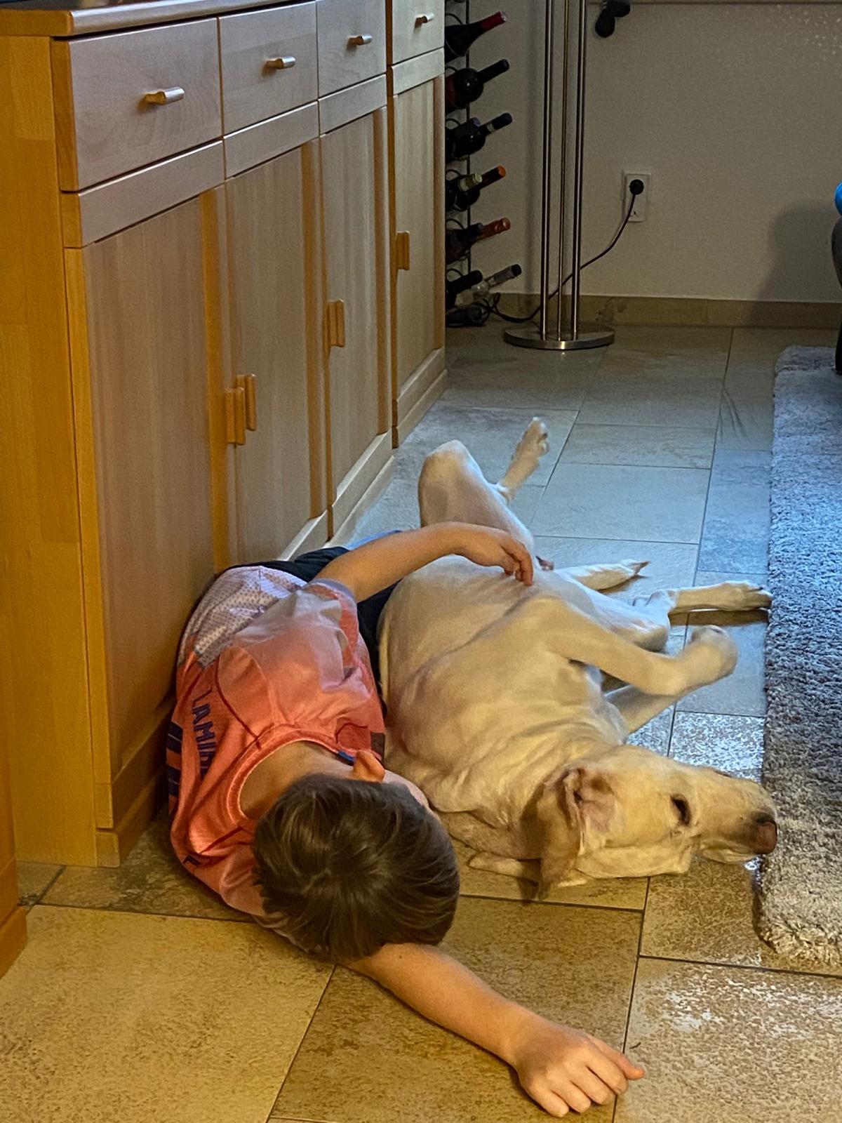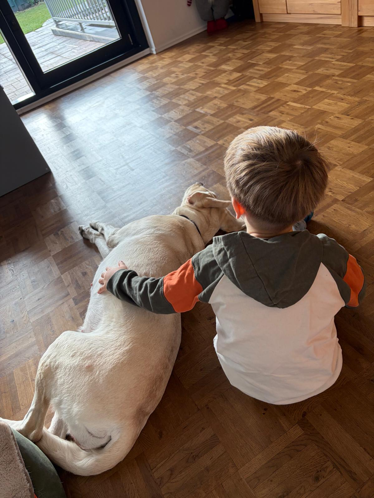 Unsere drei Kinder ( 3 J., 5 J., 7 J.) haben Lilli vom ersten Tag an freundlich und offen aufgenommen. Besonders im Umgang mit Kindern zeigt sie sich sehr emphatisch und zugewandt. Ein Moment am Ankunftstag hat uns dabei besonders berührt: Unser ältester Sohn war traurig und musste weinen – Lilli nahm dies sofort wahr, legte sich ruhig zu ihm und suchte seine Nähe. Ein stiller, sehr eindrucksvoller Moment, der ihre feine Wahrnehmung und ihr sensibles Wesen zeigt.