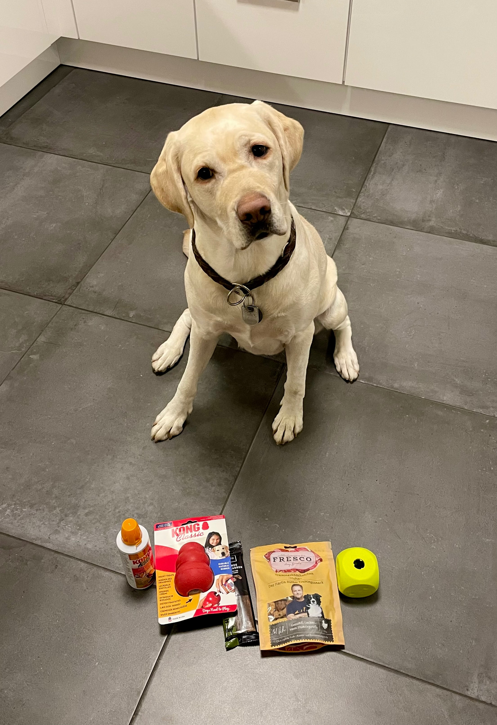 Lilli war sofort begeistert. Die neuen Spielzeuge wurden direkt mit Leckerlis befüllt und ihr zum Spielen gegeben. Als echter, gefräßiger Labrador ließ sie sich natürlich nicht lange bitten: Mit viel Eifer und erstaunlicher Geschwindigkeit hatte sie die Leckerlis schnell herausgearbeitet und genüsslich verschlungen. ![]()