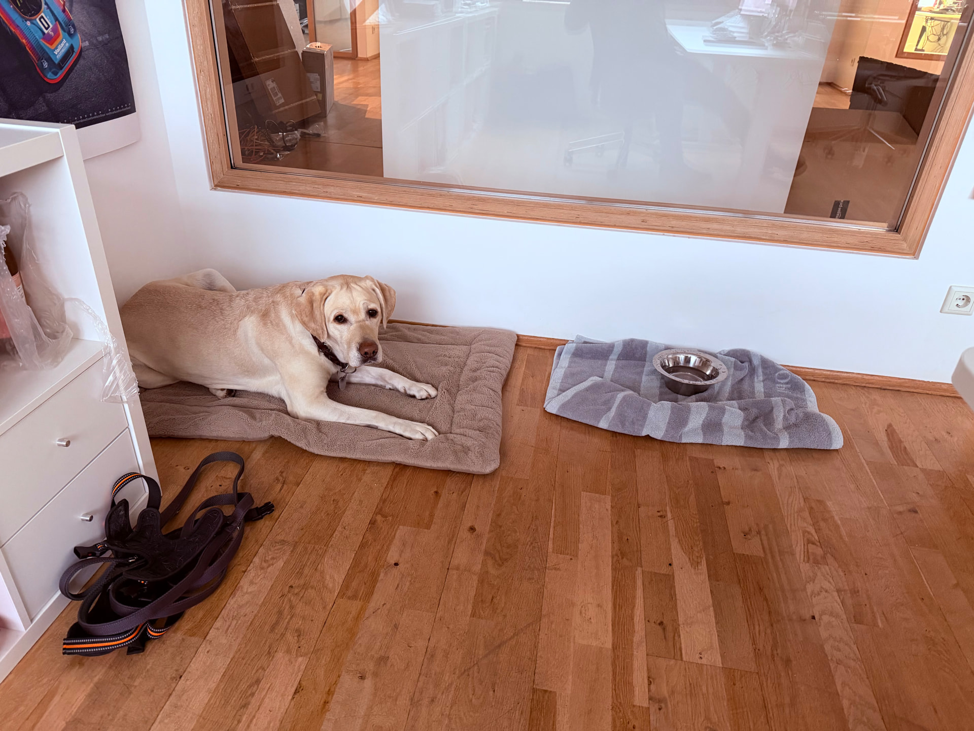 Während des Tages zeigte sich Lilli sehr entspannt. Telefonate und Videokonferenzen waren problemlos möglich, da sie sich ruhig zurückzog und aufmerksam, aber unauffällig dabei war. Sie wirkte ausgeglichen, zufrieden und bestens an den Arbeitsrhythmus angepasst – ein rundum angenehmer Bürohund.
