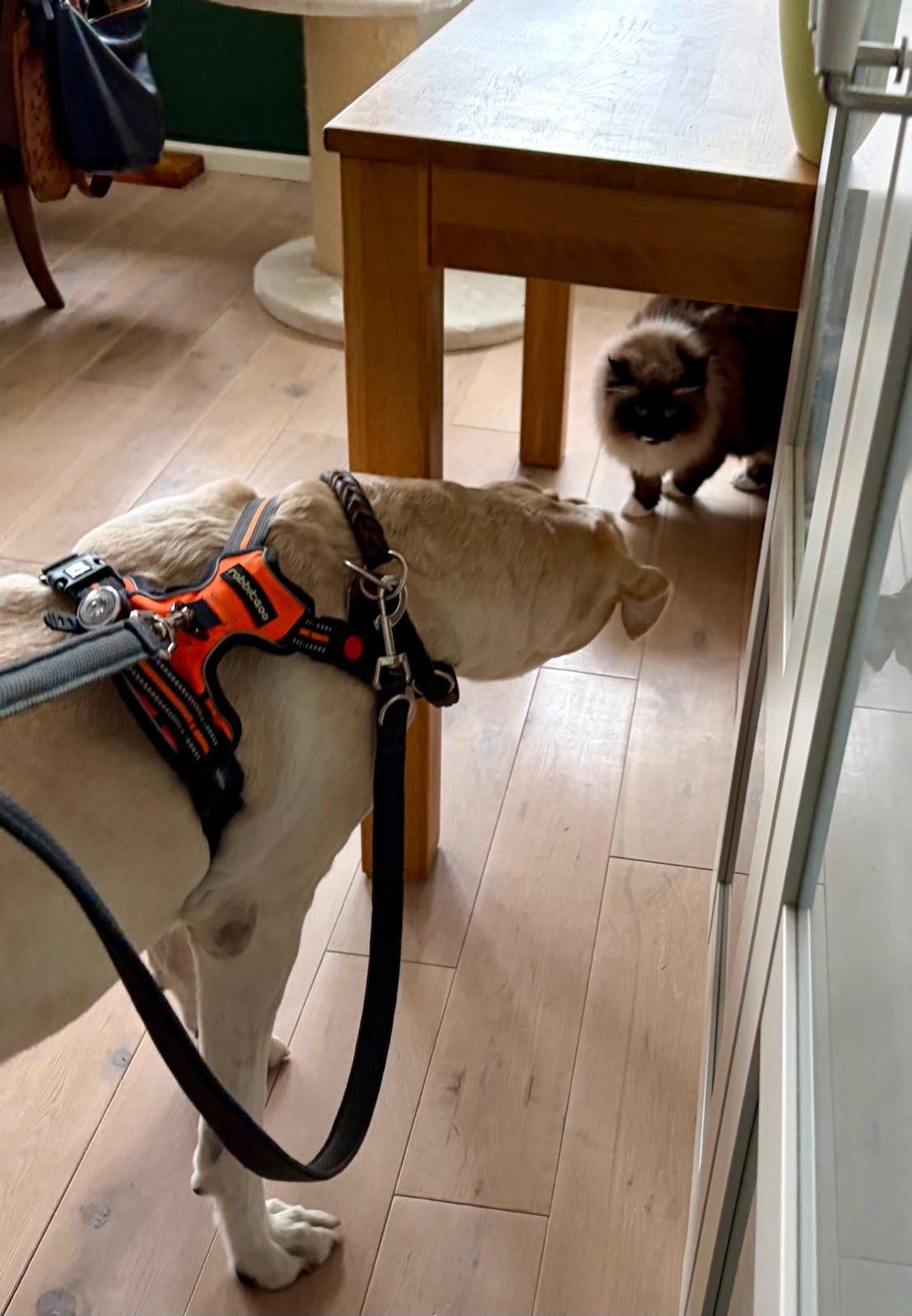 Heute durfte Lilli außerdem ihre erste Erfahrung mit Katzen machen. Diese Begegnung hat recht schnell gezeigt, dass Katzen und Lilli vermutlich keine besten Freunde werden. ![]()