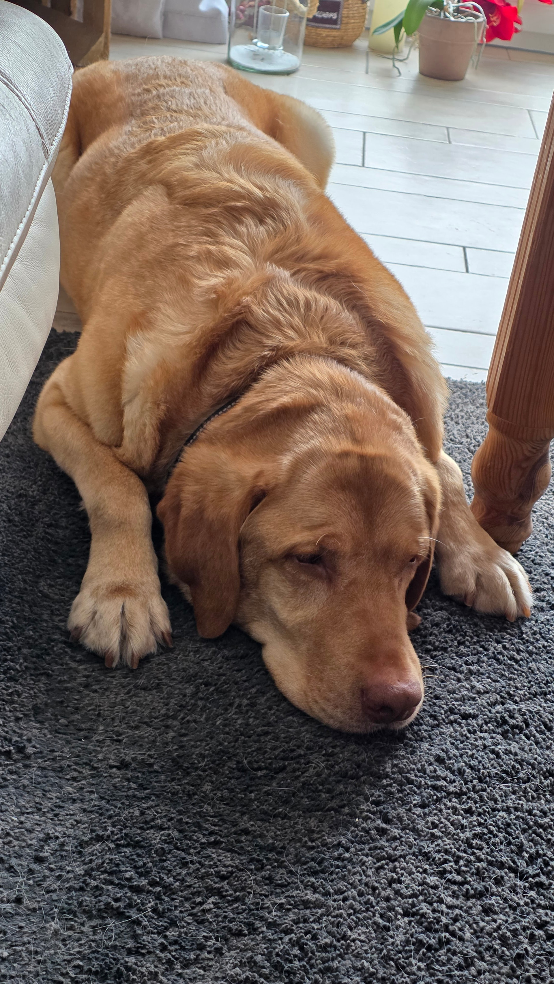 Treppen: Sam muss bei uns keine Treppen laufen, würde ihm aktuell vermutlich schwer fallen aufgrund fehlender Muskulatur und Gewicht.