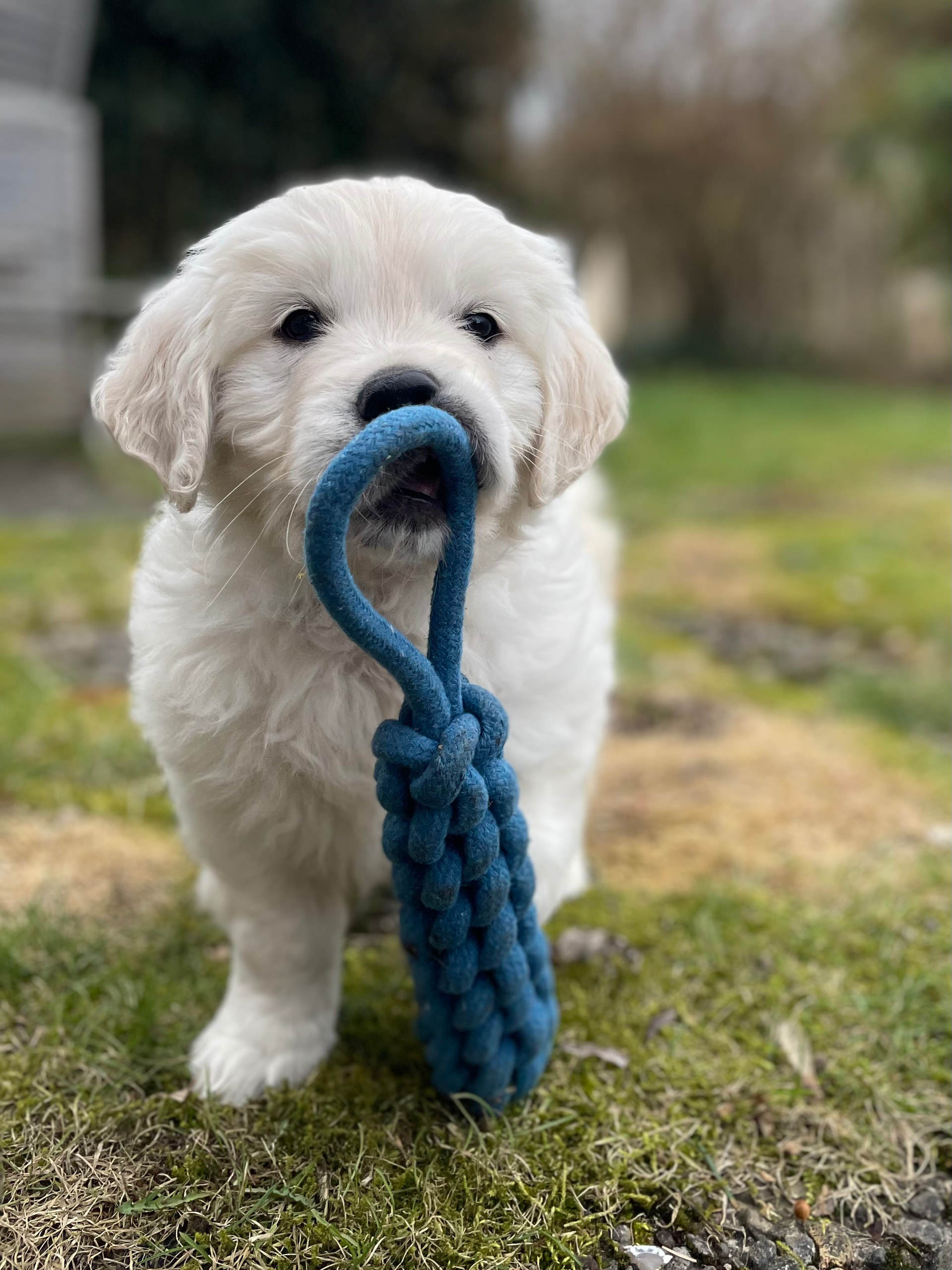 Wunsch-Zuhause: Menschen, die Zeit & Lust haben, Wilma in ihr Leben zu begleiten und die wissen, dass sich ein Welpe nicht von allein erzieht. Die auch bereit sind, ein möglicherweise weiteres Tröpfeln in Kauf zu nehmen. Wilma zeigt sehr schöne Anlagen ein paar Aufgaben lösen zu wollen: retrievertypisch trägt sie gerne Dinge umher und hätte sicherlich Spaß an etwas Hundesport. Aktuell wäre Wilma mit dem Leben in einer Stadt überfordert und aufgrund des noch Tröpfelns wäre ein Garten von großem Vorteil.