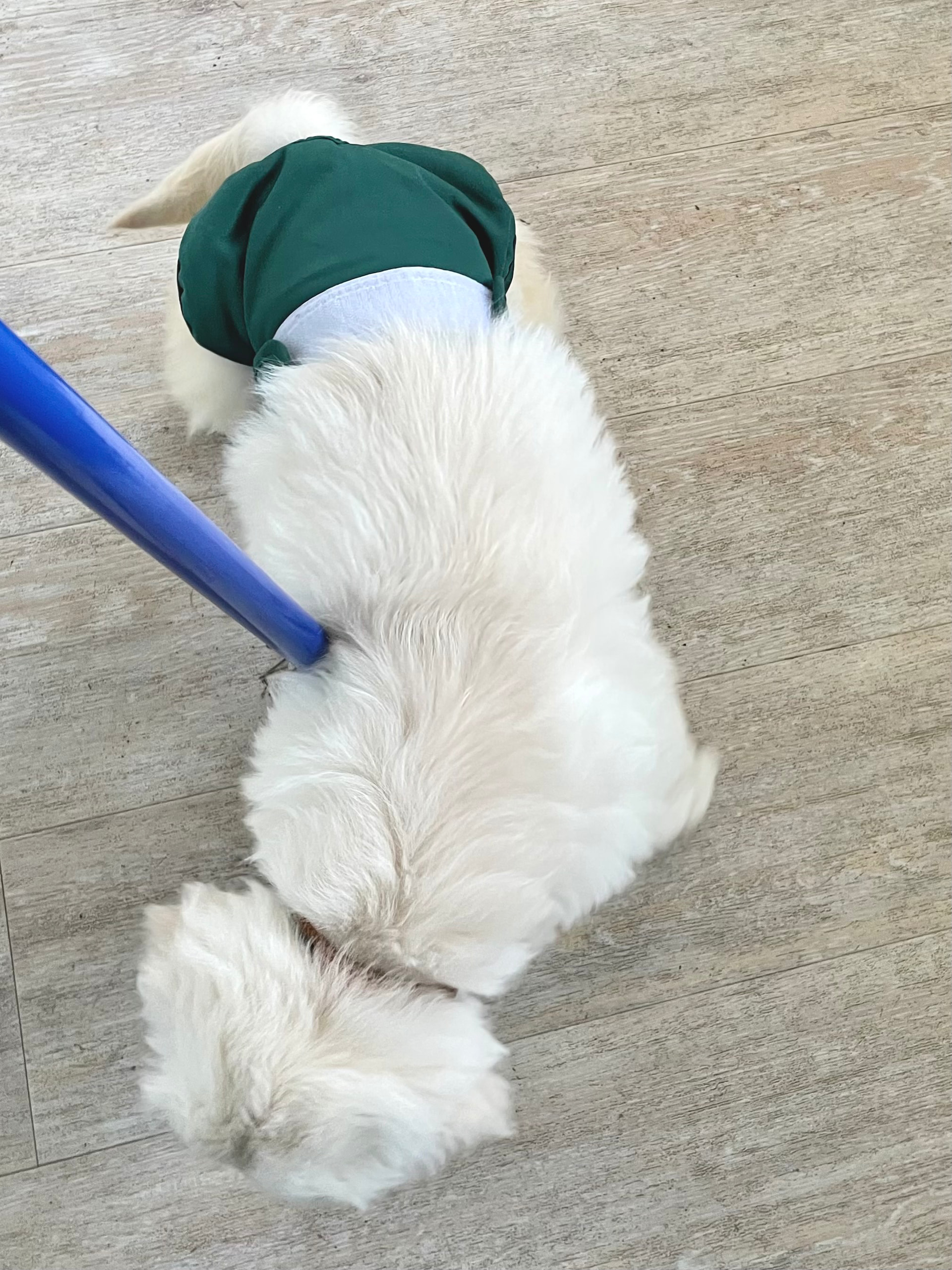 So ein Hund im Tierschutz? Ja, denn Wilma hat ein Päckchen mitgebracht: Verdacht auf ektope Ureter, das heißt, aktuell tröpfelt sie, bzw. der Urin läuft unkontrolliert aus ihr heraus - auch im Schlaf. Häufige Bäder sind also gesetzt und eine Balance finden, zwischen Windeln tragen und Luft an alles lassen. Die Kleine macht das wunderbar mit und Keksen sei Dank, findet sie sogar in kleinen Schritten gefallen daran.